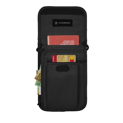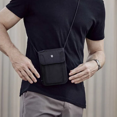Este Bolso de seguridad, se lleva colgada del cuello debajo de la ropa con un suave cordón ajustable.